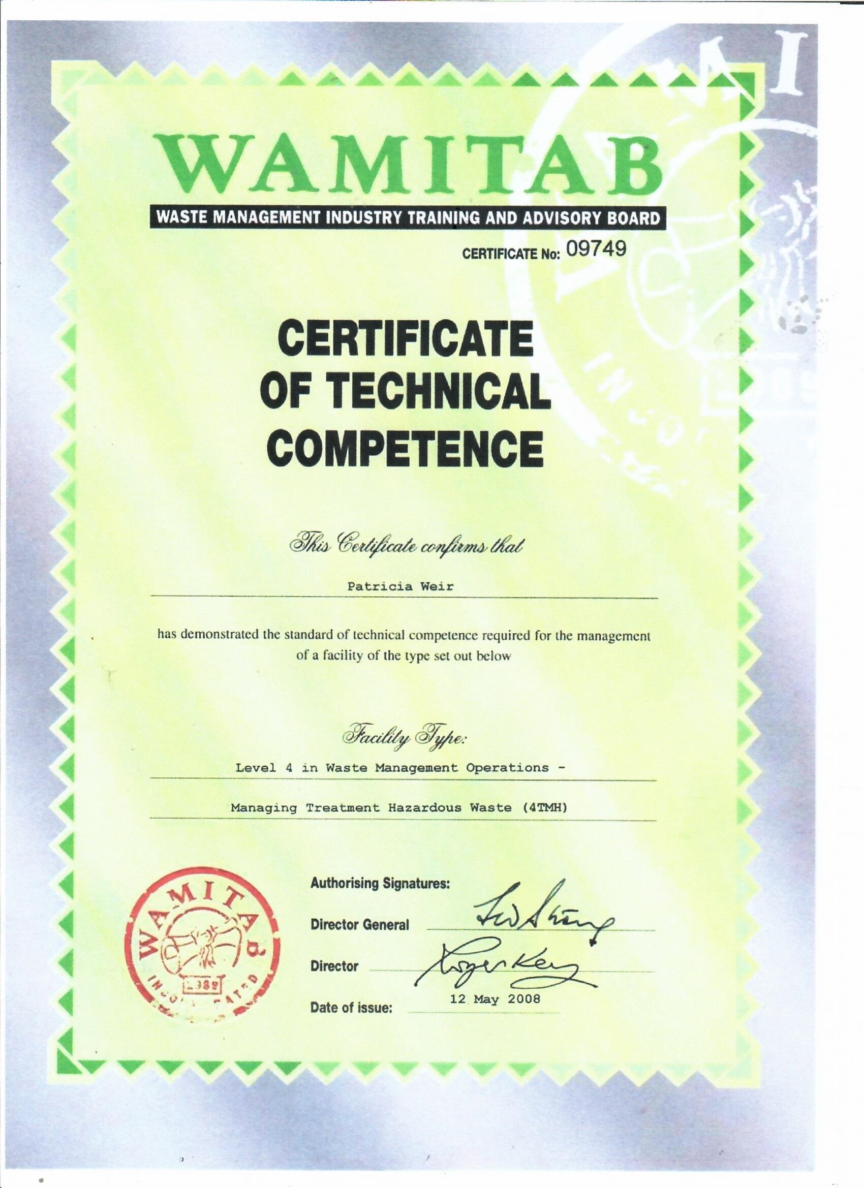- MGH Scotland’s Waste Management Industry Training and Advisory Board WAMITAB Certificate